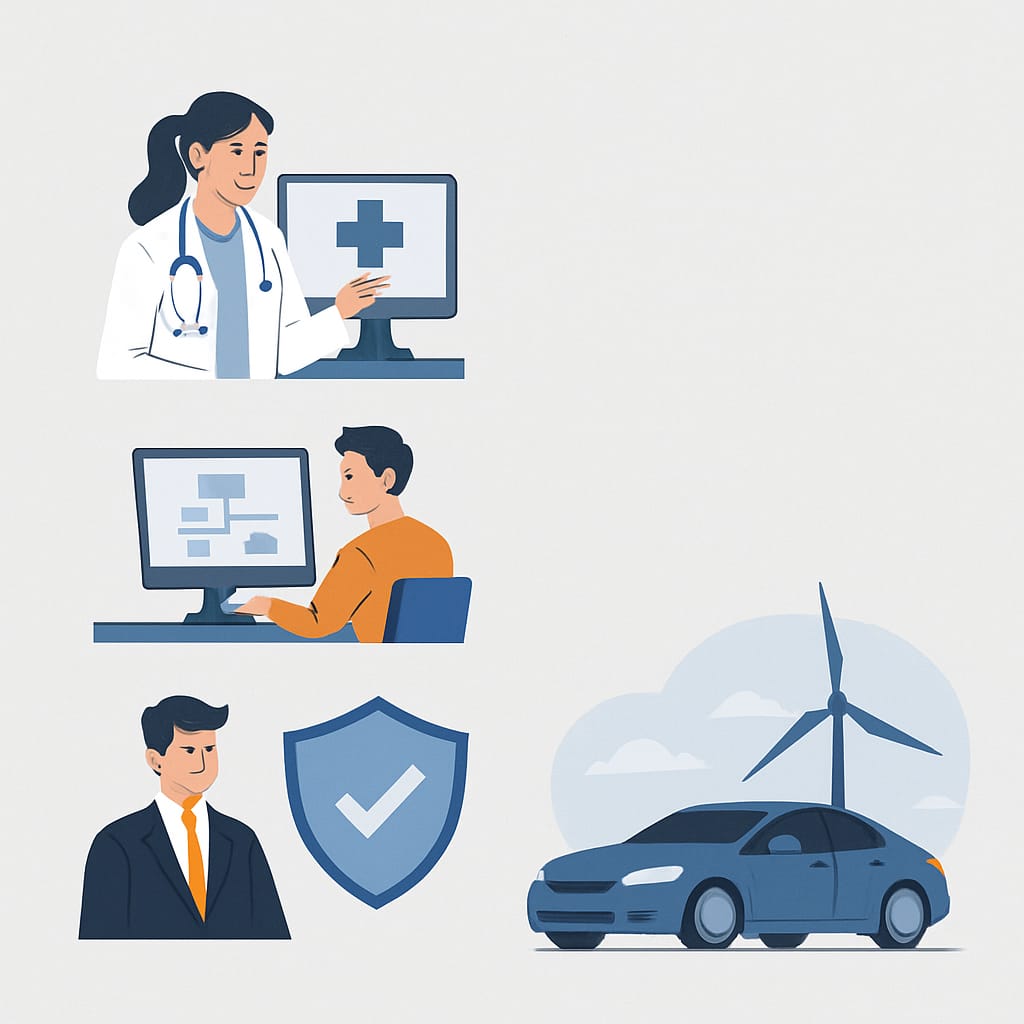 we pride ourselves on being a trusted one-stop destination for end-to-end work solutions across multiple industries. Whether it’s streamlining healthcare services like mediclaim and government scheme implementation, managing insurance operations with precision, automating compliance in the automobile sector, or executing eco-friendly renewable energy projects — we deliver with excellence.